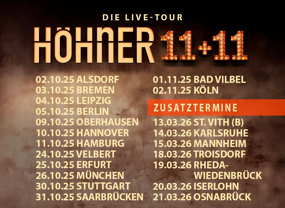 Mit Songs aus über 5 Jahrzehnten bis hin zum aktuellen Album "11+11" nehmen wir euch mit auf eine Reise durch den Höhner-Kosmos, die euch begeistern wird.